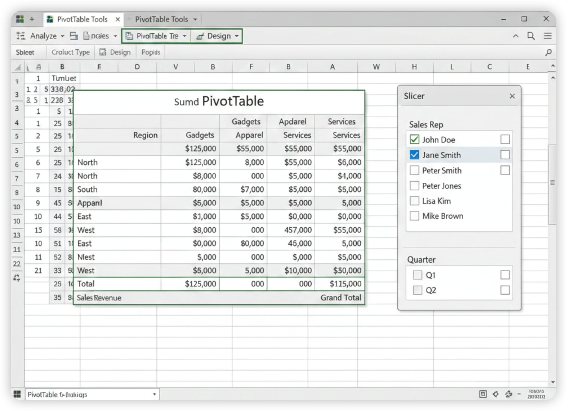No formulas in sight. If the data grows from 10,000 to 200,000 rows, the PivotTable doesn’t really care.